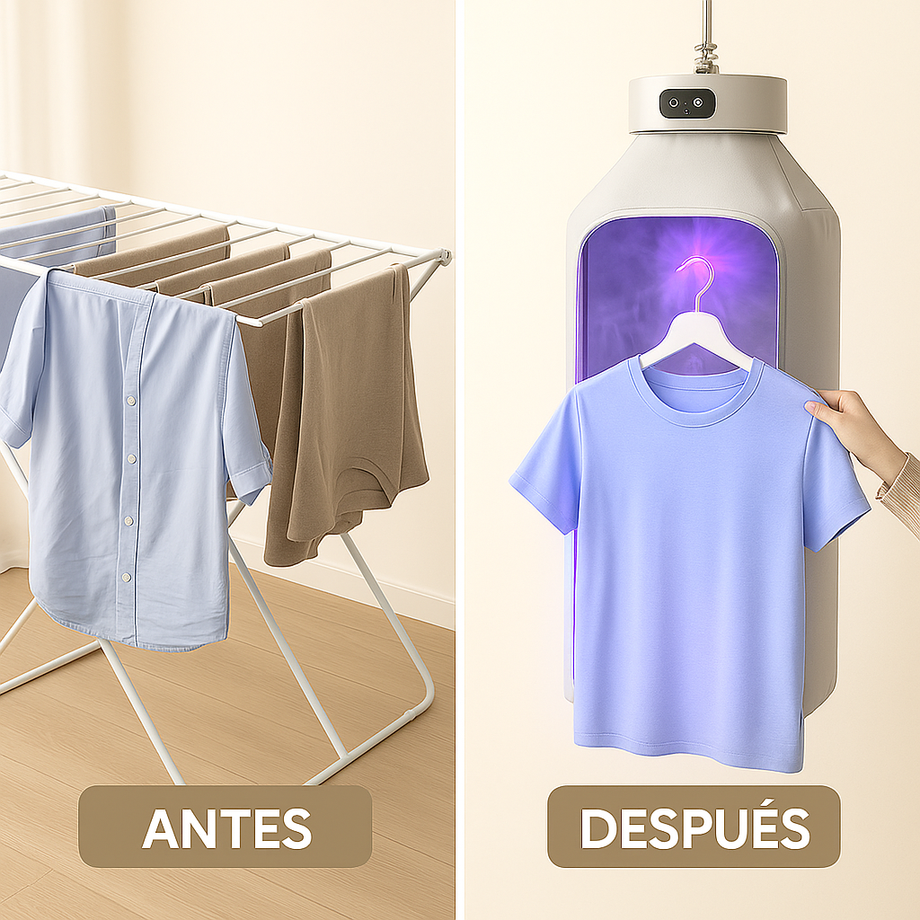 Imagina llegar a casa en un día lluvioso y saber que tendrás tu ropa seca, lista y sin olor a humedad en solo minutos.Visualiza tu departamento sin más ropa colgada en el living.